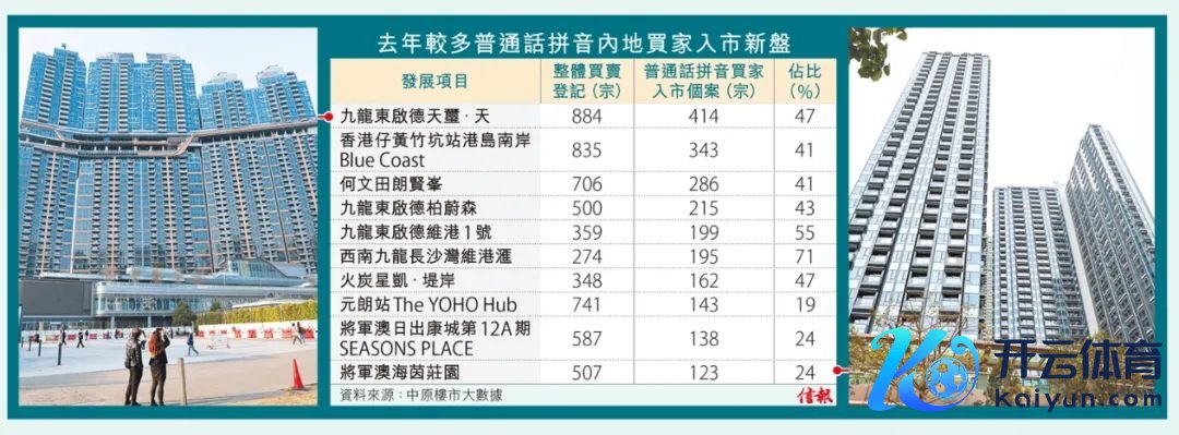 若以个别新盘作比拟,旧年最多平方话拼音买家的新盘状貌首五位中,有3个位处启德。港铁启德站隔邻的天玺.天最受见谅,共有414宗,占该盘884宗一手生意登记约47%。另外两个状貌位处跑说念区,当中由新寰球(00017)和远展(00035)和洽发展的柏蔚森系列排第四,全年500宗生意登记中,平方话买家占215宗或约43%,新寰球发展营业及市务(独特状貌)部总司理何家欣以为,该状貌可望游艇海景或维多利亚港,有多元化海景选拔,故深受内地客见谅。摆布的维港1号以199宗排第五。