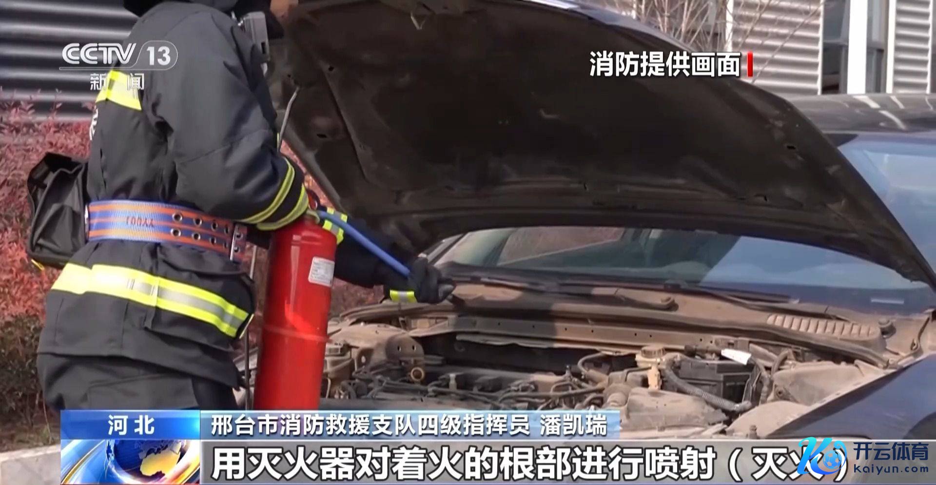 邢台市消防挽回支队四级辅导员 潘凯瑞:如若是车轮因刹车片过热,导致摩擦生热产生失火,在诓骗熄灭器欺压火势之后,尽可能寻找水源进行冷却降温开云登录入口登录APP下载(中国)官方网站,幸免火势复燃。而发动机舱内发生冒烟故障,应将引擎盖开条小缝,用熄灭器从症结处瞄准里面着火点,进行喷射熄灭,随后大开引擎盖,用熄灭器对着火的根部进行喷射熄灭。