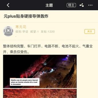 以色列手脚中国新动力汽车的遑急市集之一,这一次干戈,好几台国产车被导弹击中,包括比亚迪元PLUS和小鹏G6。