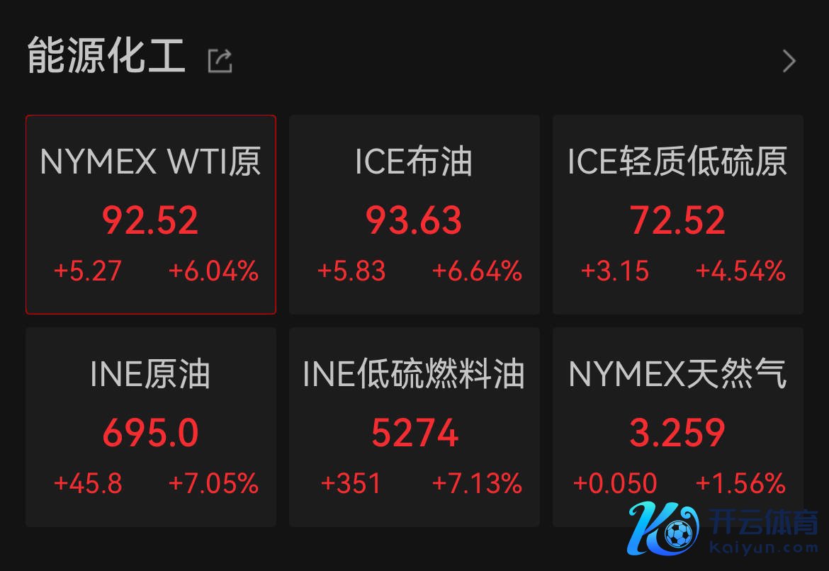 【大河财立方音讯】北京时辰3月12日早间开yun体育网,海外油价握续大涨。戒指发稿,WTI原油报92.52好意思元/桶,ICE布油报93.63好意思元/桶,涨幅均超6%。