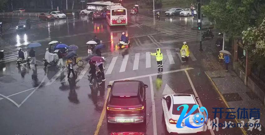 “雨不停,咱们就不停。”9日清早6时,左近早岑岭,军山街综治中心的黄桂珍、赵久雨两名环卫工东说念主冒着大雨对排水口进行侦查。在军山街海伦小镇三期路口,他们发现路面雨水不绝收集,排水口受阻,便用双手和器用反复清算格栅内的落叶、淤泥和杂物。